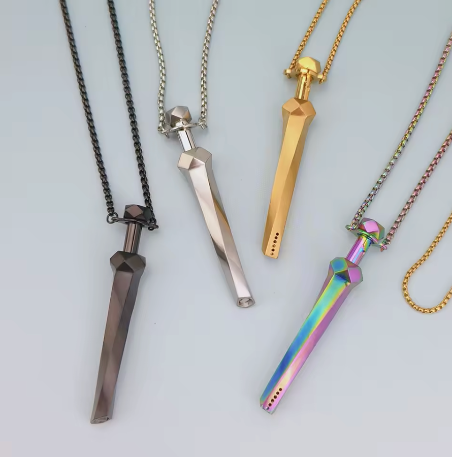 The necklace features a unique breathing hole, which is a distinguishing characteristic of the design allowing for deeper breathing,